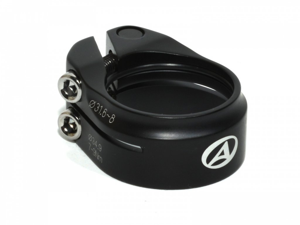 Podsedlová objímka Author. Konstrukce se dvěma šrouby zaručuje velmi pevné dotažení, které zabraňuje zajíždění sedlovky do rámu.