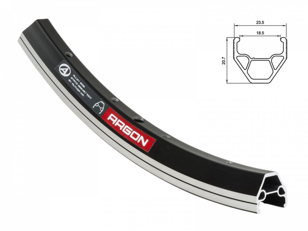 Dvoustěnný ráfek, 32 děr pro paprsky, profil z materiálu AL6061H-T6 spojen kolíky, ERD 534mm, CNC obráběné boky, otvor pro AV auto ventil.
