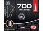 Duše AUTHOR 700x25/38C vyrobená ze 100% butylové pryže s velmi nízkou propustností pro plyny. Udrží tlak vzduchu v pneumatice jízdního kola po delší dobu, než duše...